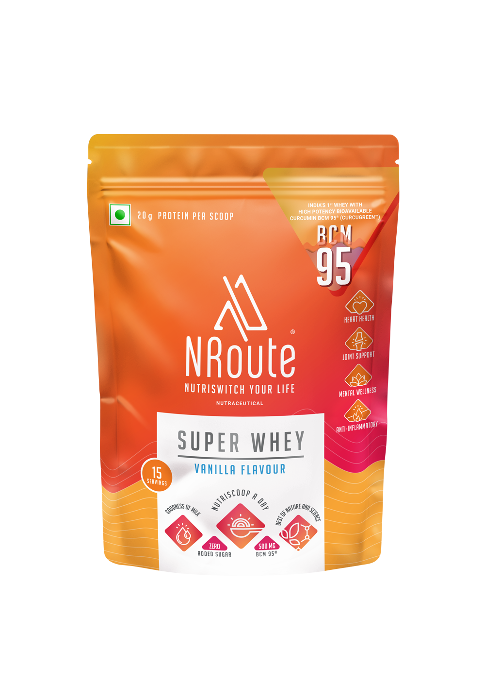 Super Whey is a path breaking, first of its kind combination of purest protein blended with highly potent curcumin called BCM-95® which is 7 times more absorbable than ordinary curcumin. That is benefit of a proven and well researched turmeric extract which offers a host of benefits from mood and stress support, anti-ageing, anti-inflammatory, breast health, kidney support, heart health and joint support. Each 30 GM scoop of Super Whey, has 20 GMS of pure protein and 500 MG of BCM-95® a potent fortification with all essential vitamins and minerals.